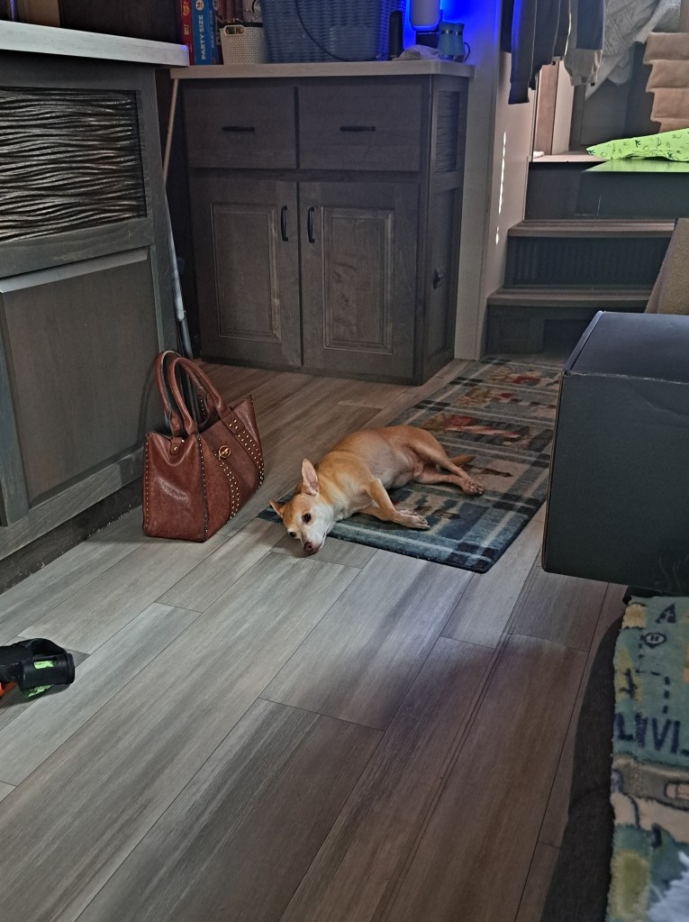 Weather has been perfect. Cary goes into the office every day except for Tuesday and Dante and I chill at the trailer.