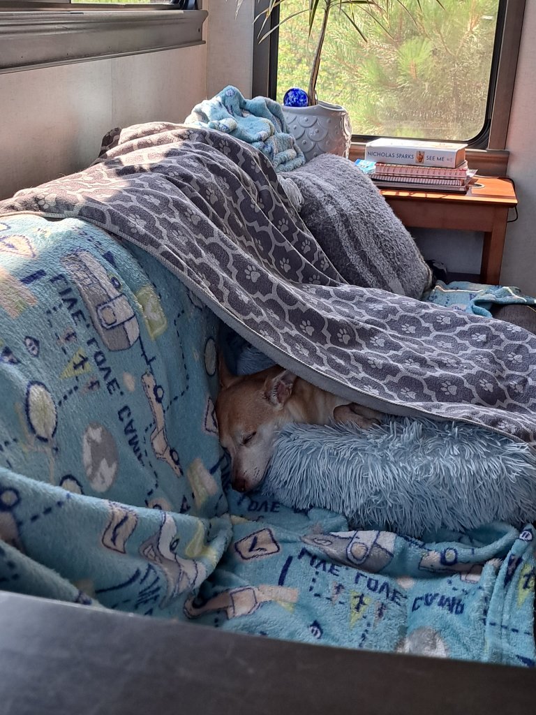 For now, enjoy these photos of our Dante. He has a very rough life traveling with us! Spoiled rotten!