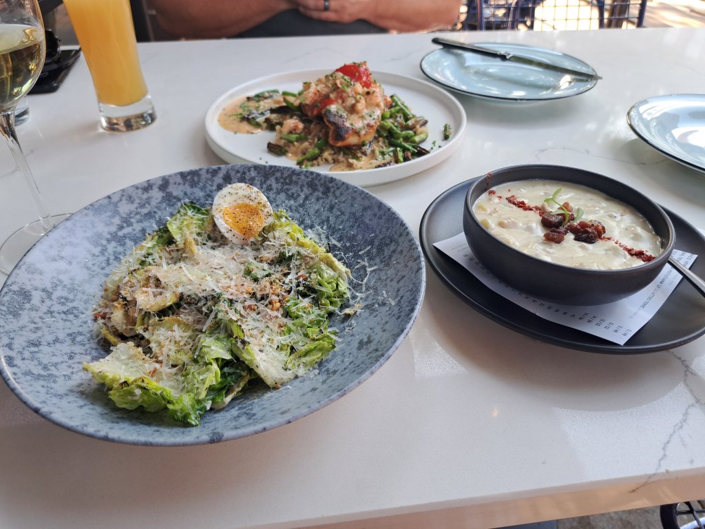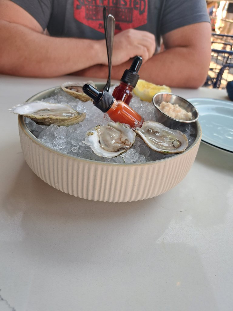 We went out to dinner tonight at a place called Plank Seafood and Provisions. Cary was in heaven with his oysters and dinner. I had a grilled Caesar salad and Thai soup, so yummy and our server was awesome!