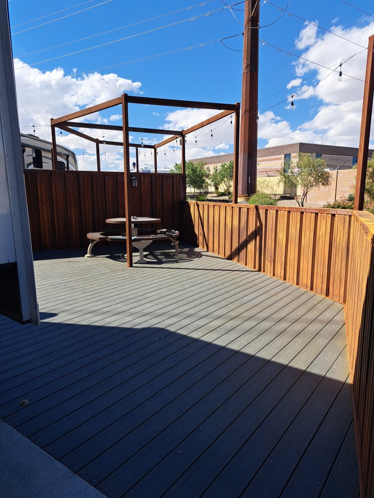 We arrived in Albuquerque early afternoon, we are in spot B and have a deck!