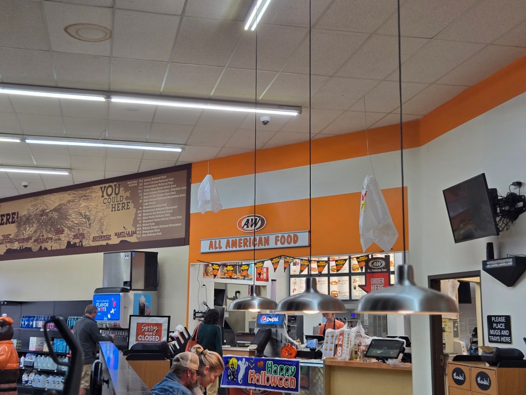 We enjoyed lunch at the A & W, which is also a gas station and bowling alley.