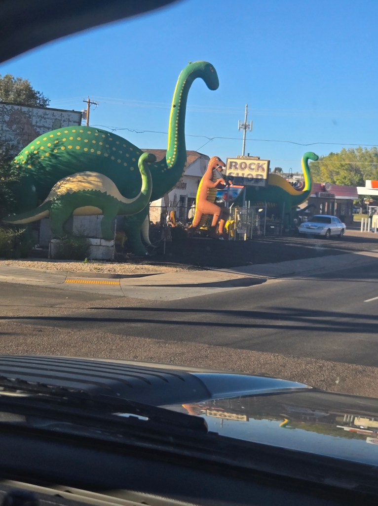 The Wigwam Hotel is very cool with the old cars sitting around! We found the world’s longest map of Route 66. Dinos of Holbrook, historic old route 66 landmark.