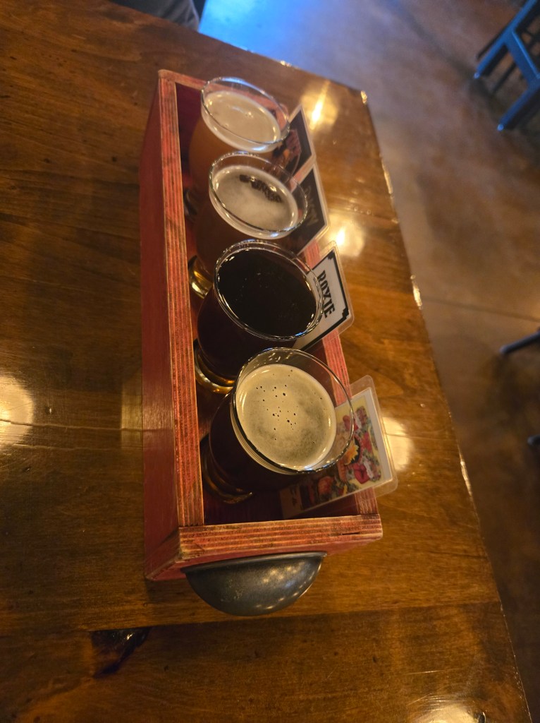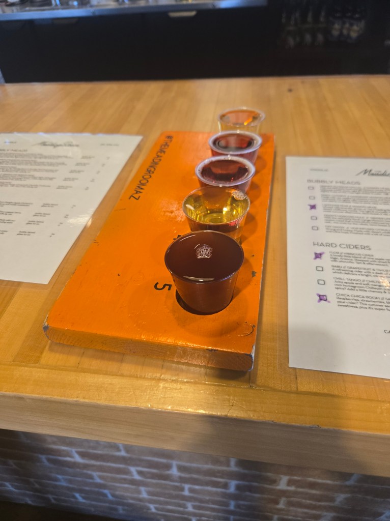 We visited several wineries over the week, and had our last dinner at the brewery.