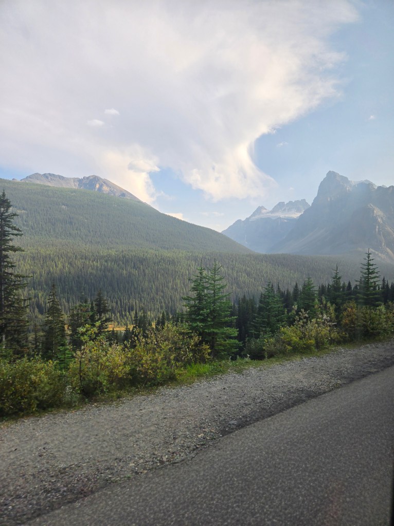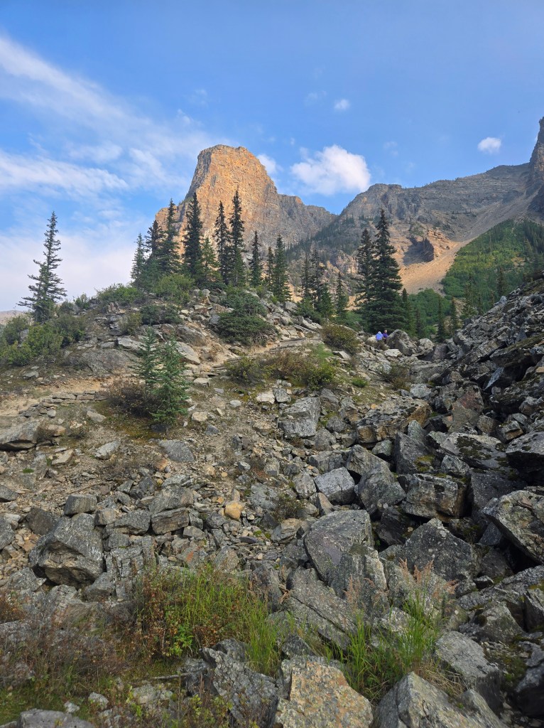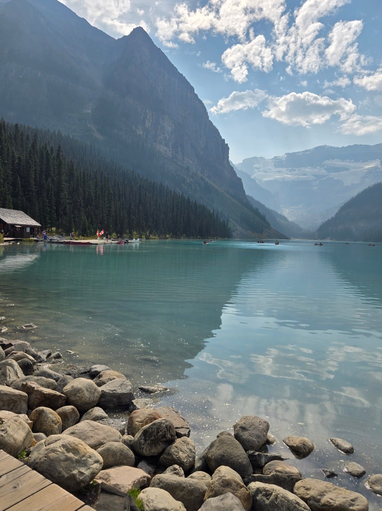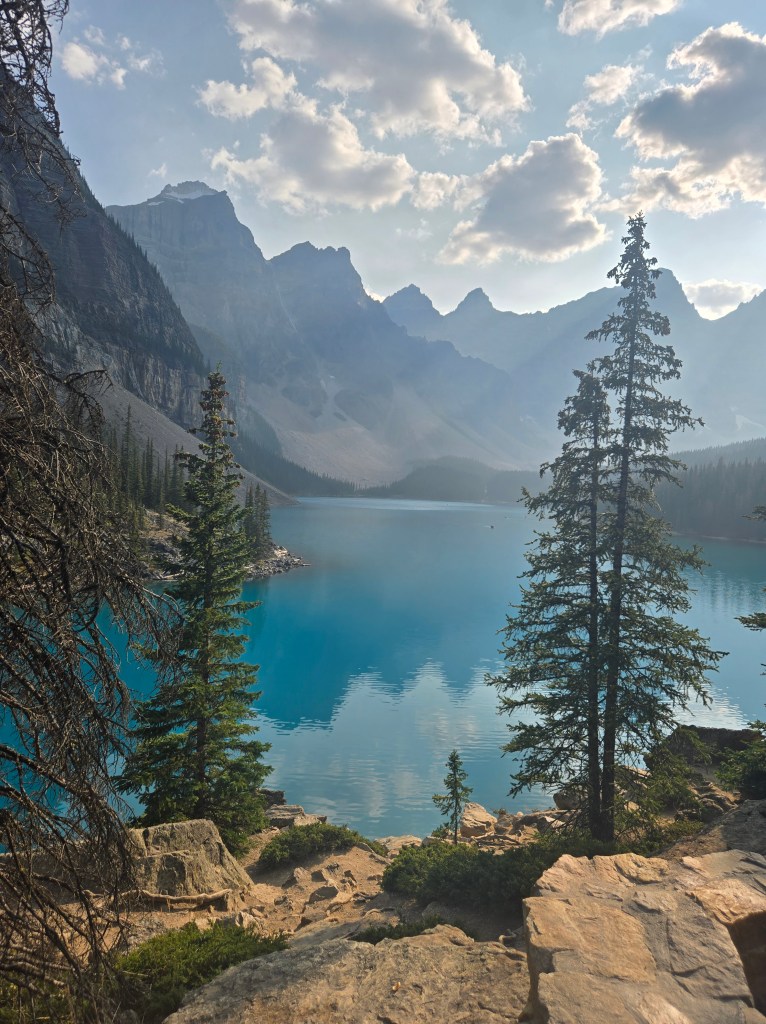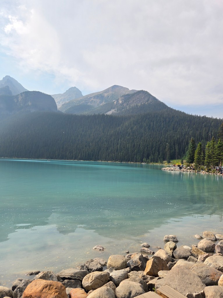 Lake Moraine was less crowded, thank goodness! We hiked to the top and the views are just amazing! There were different colors in the water, but the blue hue towards the one end was just stunning! We hit up the gift shop and got some snacks. As we walked around the edge of the lake, we saw a bride having photos taken up on the viewpoint. It was cool to watch, those two will have some epic wedding photos!