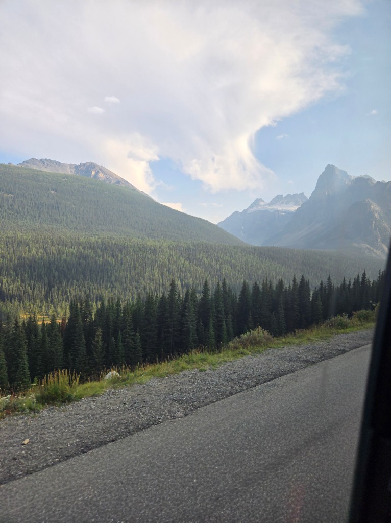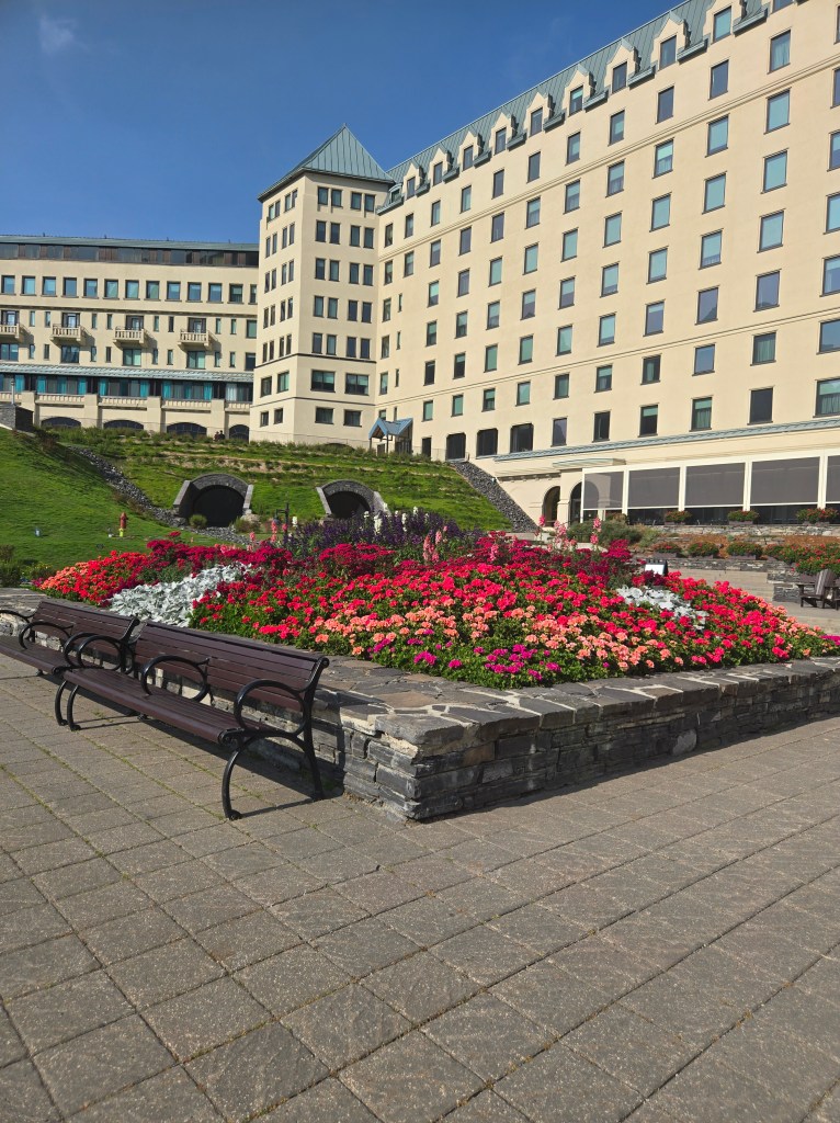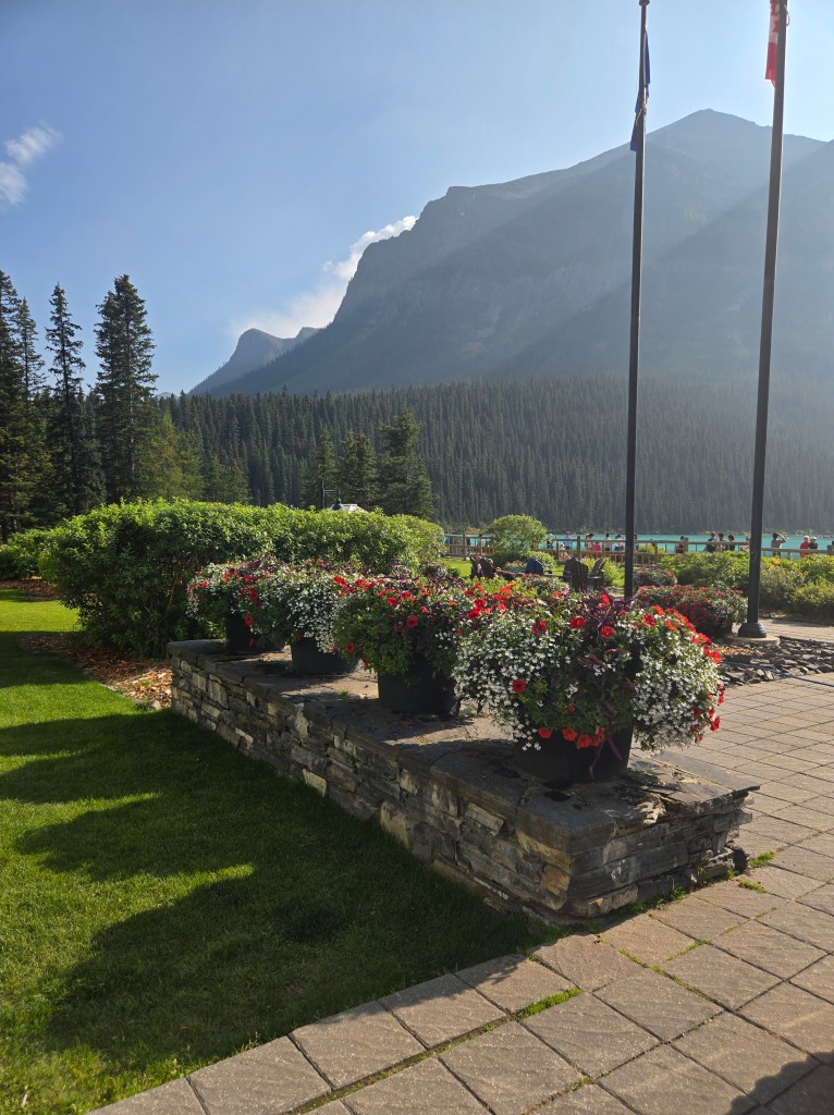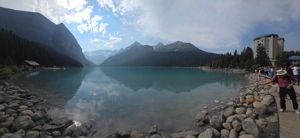 First stop was Lake Louise. It was beautiful for sure, but way too crowded! Cary and I walked around the lake to take pictures and then found our way to the hotel bar! It was away from the crowds so we could really enjoy the views. The hotel is spectacular in itself!